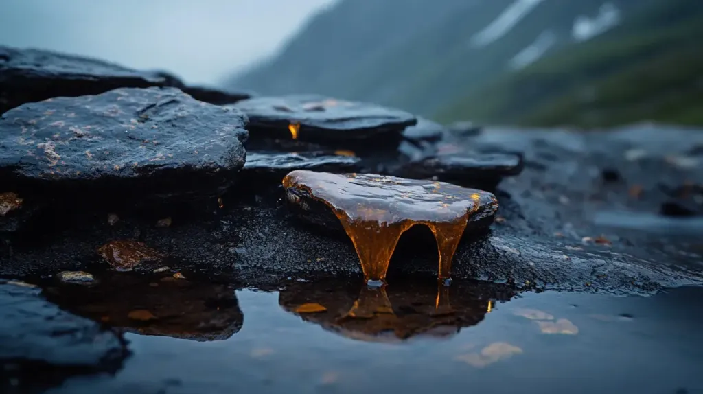 Le shilajit pure, c’est de la résine brute extraite directement des montagnes de l’Himalaya ou de l’Altai. C’est un concentré de minéraux et d’acides fulviques, non dilué, non transformé, et surtout sans additifs. Il a une texture visqueuse, une couleur noire ou brune, et une odeur caractéristique (pas toujours agréable, on ne va pas se mentir). Voila à quoi ressemble le vrai shilajit.