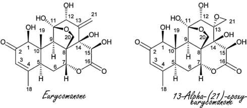 Pour résumer ces études, les 2 molécules actives de la racine de d’eurycoma longifolia sont l’eurycomanone et le 13-alpha-epoxy-eurycomanone. Ce sont celles-ci qui nous intéressent pour la musculation, l’amélioration des performances et l’augmentation de la testostérone bien que plusieurs autres molécules du tongkat ali permettent également de booster la testostérone.