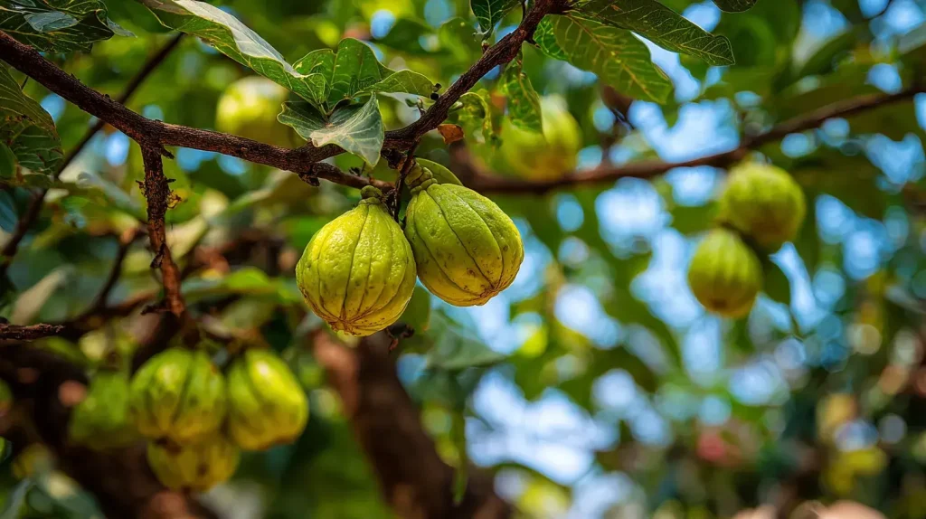 Le Garcinia cambogia est un fruit tropical originaire d’Inde et d’Asie du Sud-Est. Sa forme évoque celle d’une petite citrouille verte ou jaune, et il porte également le nom de tamarinier de Malabar. Utilisé traditionnellement dans la cuisine locale pour donner une saveur acidulée aux plats, ce fruit recèle des propriétés métaboliques qui intéressent désormais le domaine de la nutrition minceur.