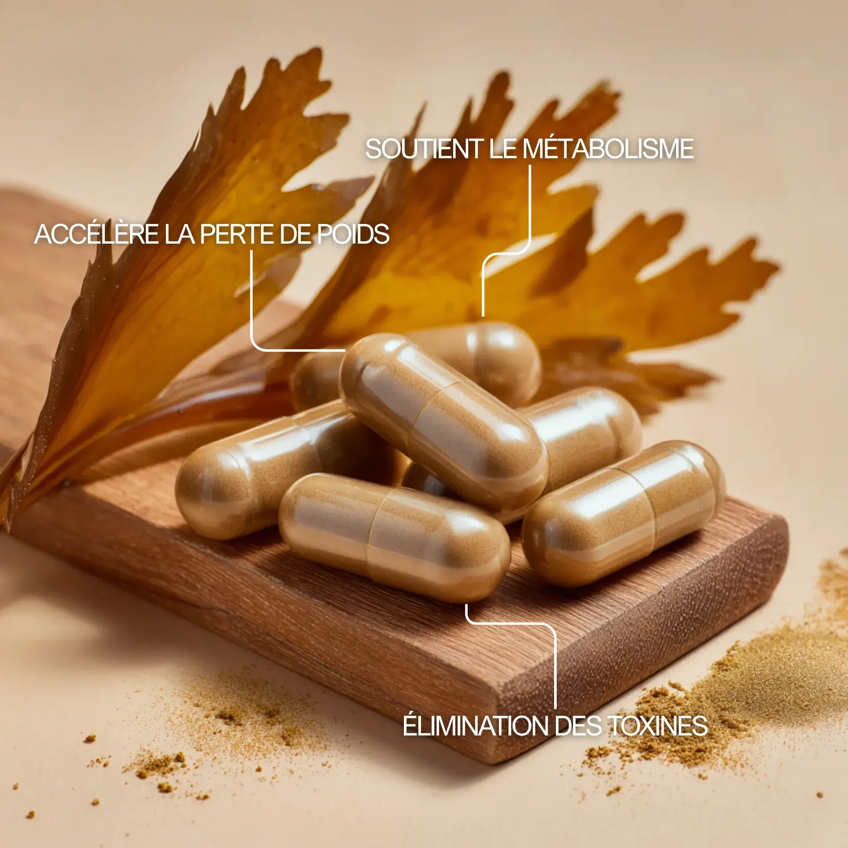 Grâce à sa richesse en fibres solubles et en mucilages, le Fucus se transforme en gel au contact de l’eau dans l’estomac. Ce processus augmente la sensation de satiété et aide à réduire les grignotages, ce qui en fait un allié minceur efficace et naturel.