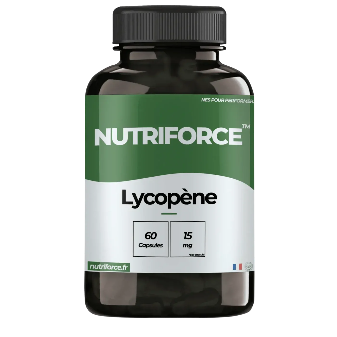 Lycopène 15mg, Agent de charge : citrate de magnésium, gélatine végétale (capsule à base de cellulose)