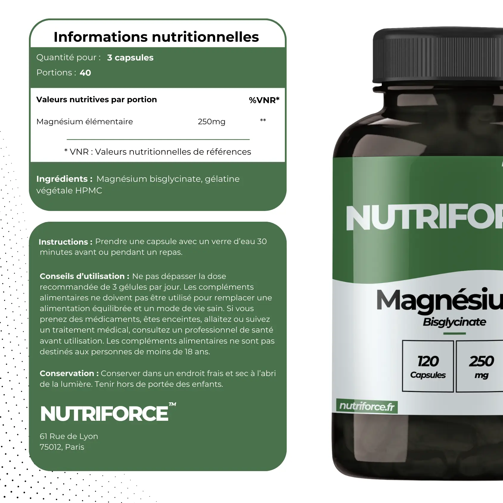 Magnesium Bisglycinate pure 500mg, gélatine végétale (capsule à base de cellulose)