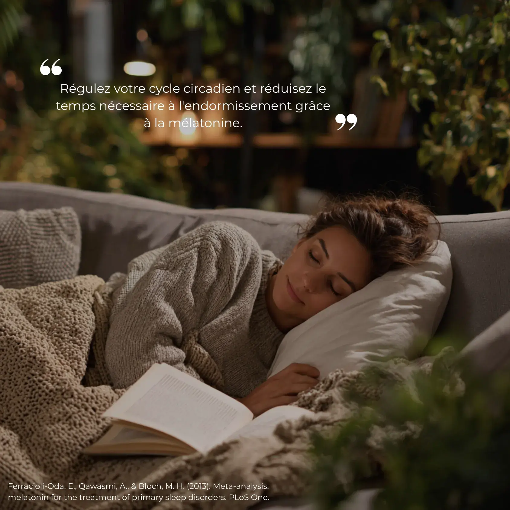 La mélatonine facilite l’endormissement en imitant le pic nocturne naturel de cette hormone. Sa prise réduit la latence d’endormissement sans perturber la structure des cycles de sommeil, contrairement aux somnifères traditionnels.