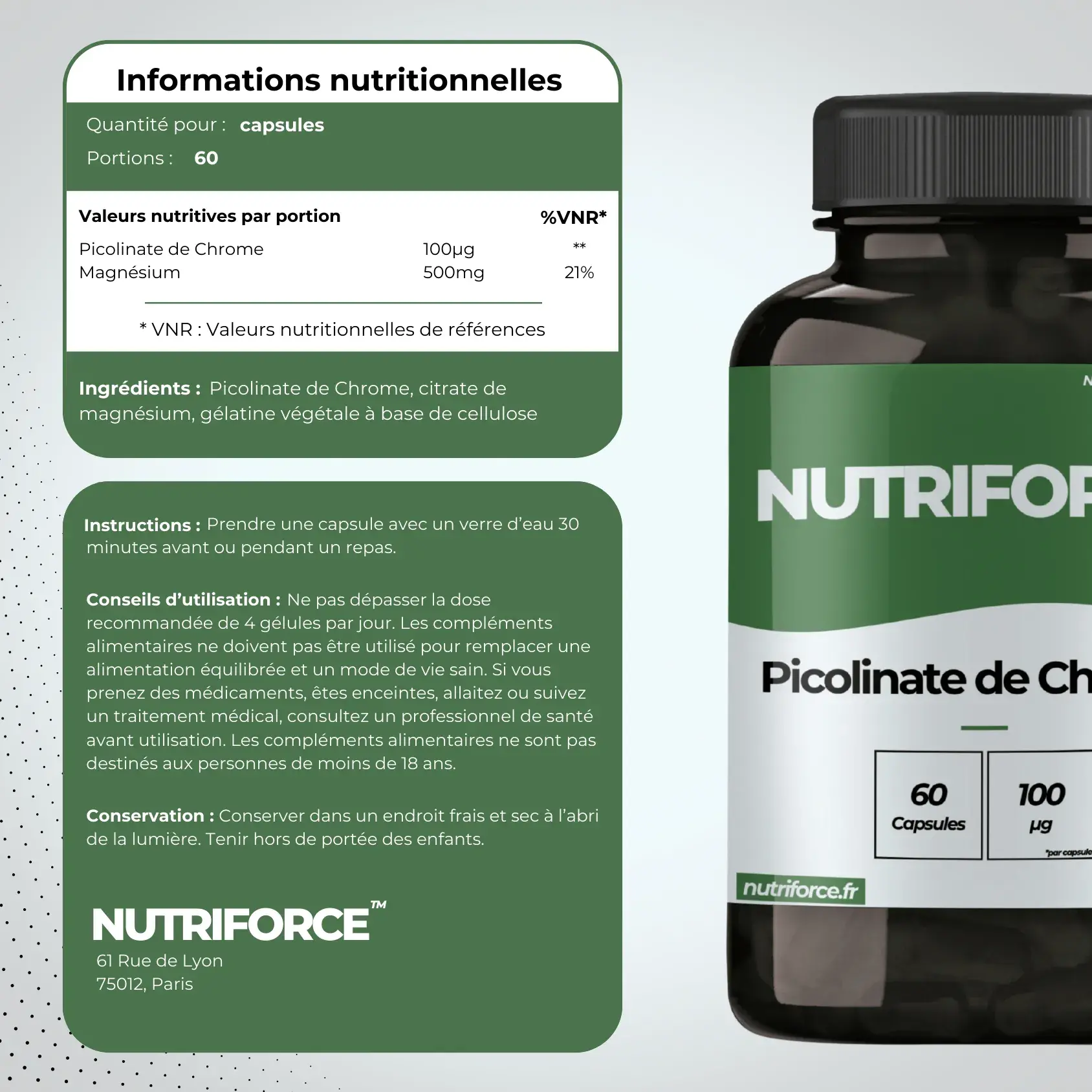 Grâce à son action sur la régulation du glucose sanguin, le chrome aide à diminuer les fringales et les envies de sucre. Contrôlez naturellement votre appétit et retrouvez une relation saine avec la nourriture.