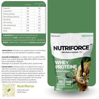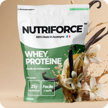 Fabriquée à partir d’un lait français de première qualité, la whey Nutriforce offre une texture onctueuse, un goût authentique et des valeurs nutritionnelles optimales pour accompagner vos objectifs de performance.